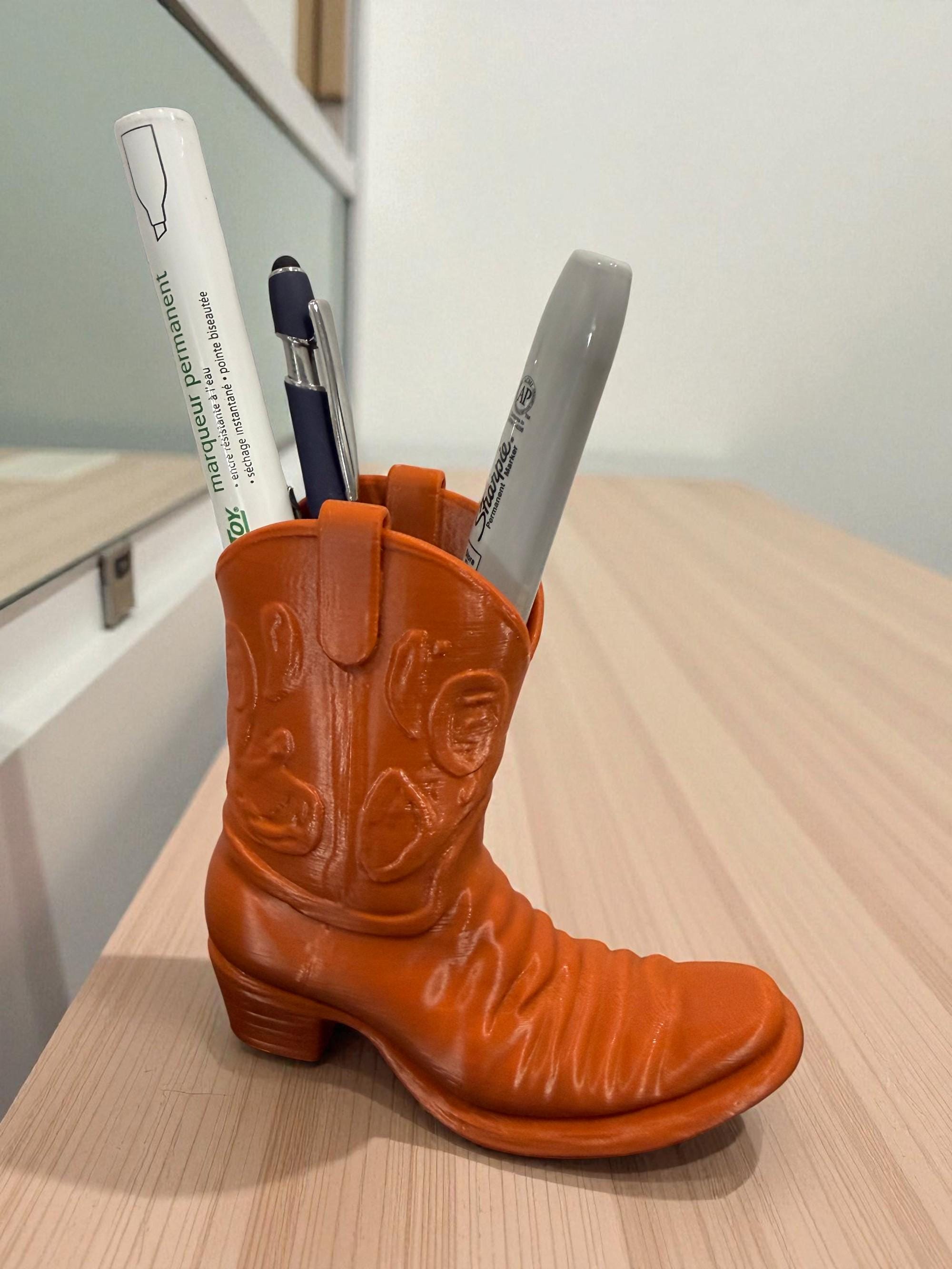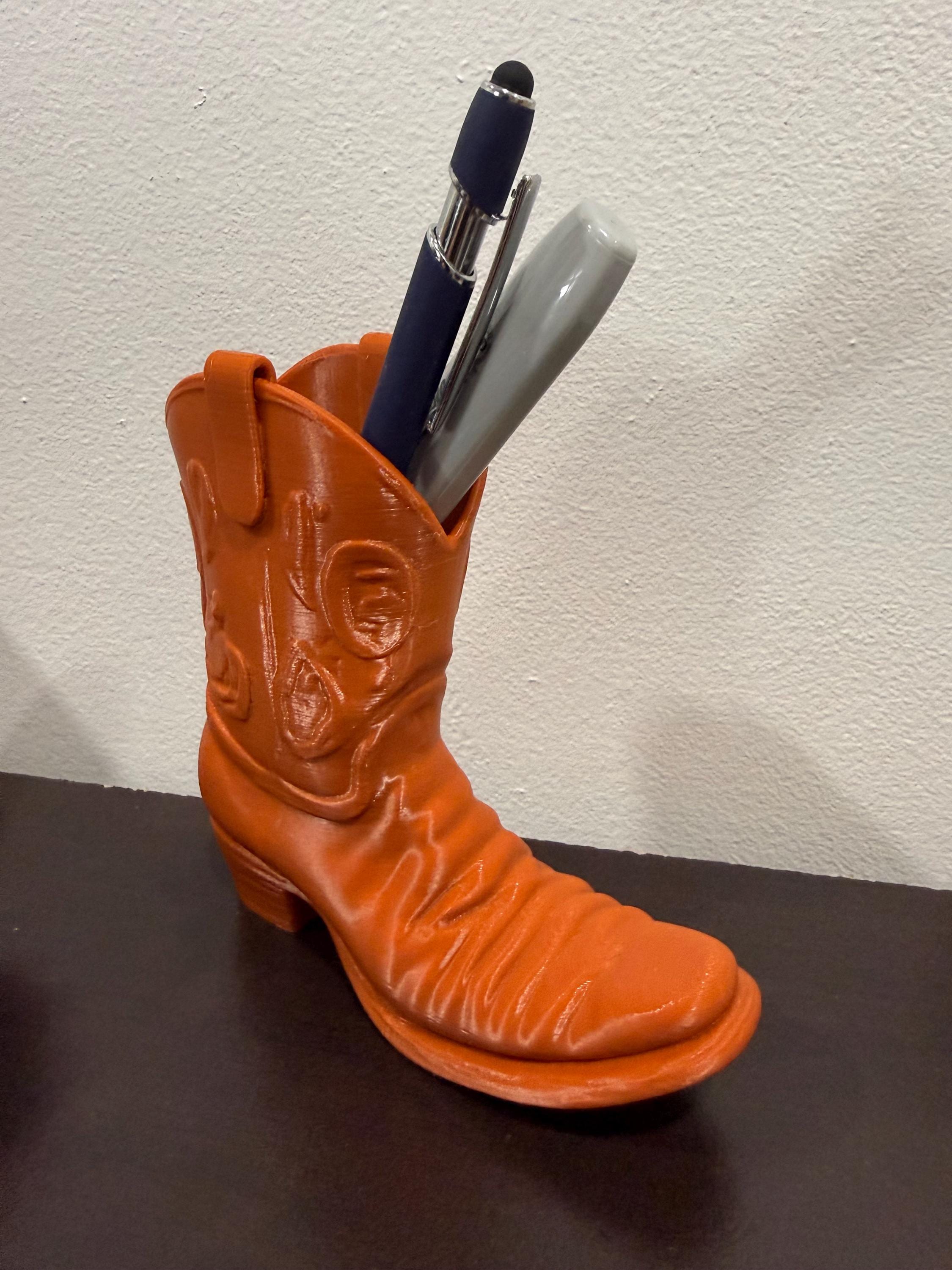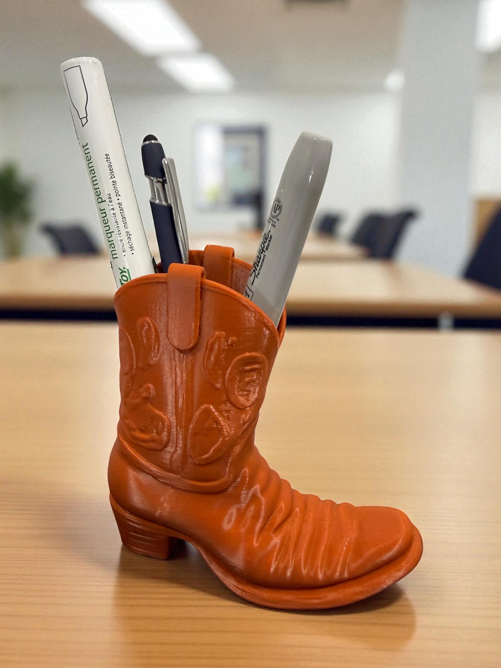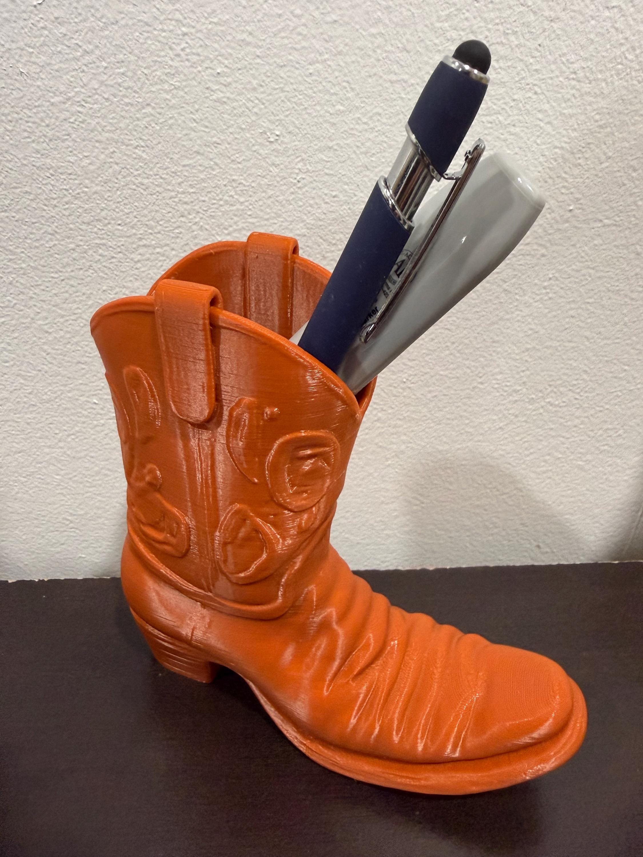 Add a touch of rustic flair to your desk with this handcrafted Cowboy Boot Desk Organizer! Designed to wrangle your pens, pencils, scissors, and more, this charming piece blends functionality with frontier style. Whether you're a country soul at heart or just love unique décor, this boot-shaped organizer is the perfect way to lasso your clutter and keep your workspace tidy.