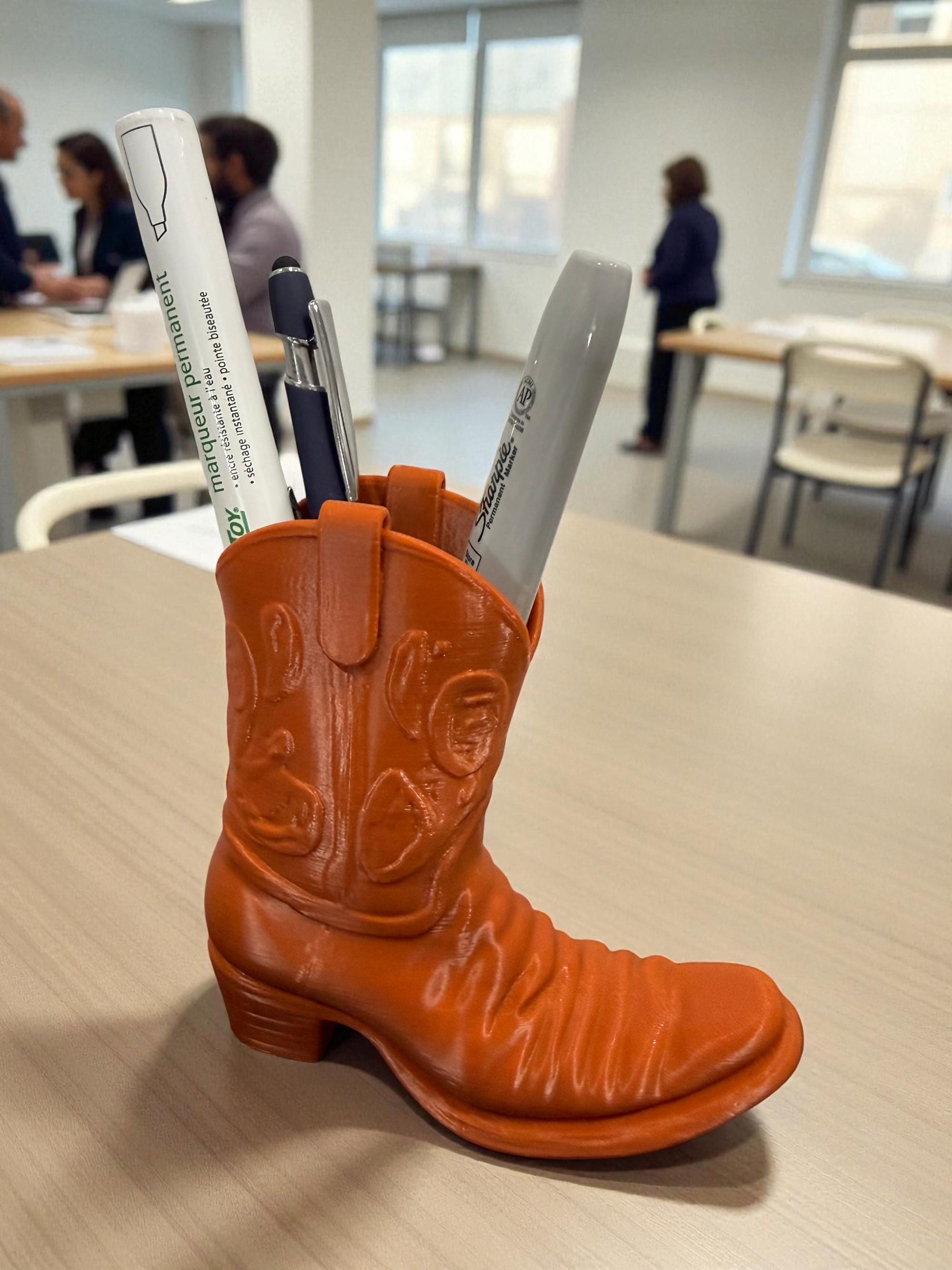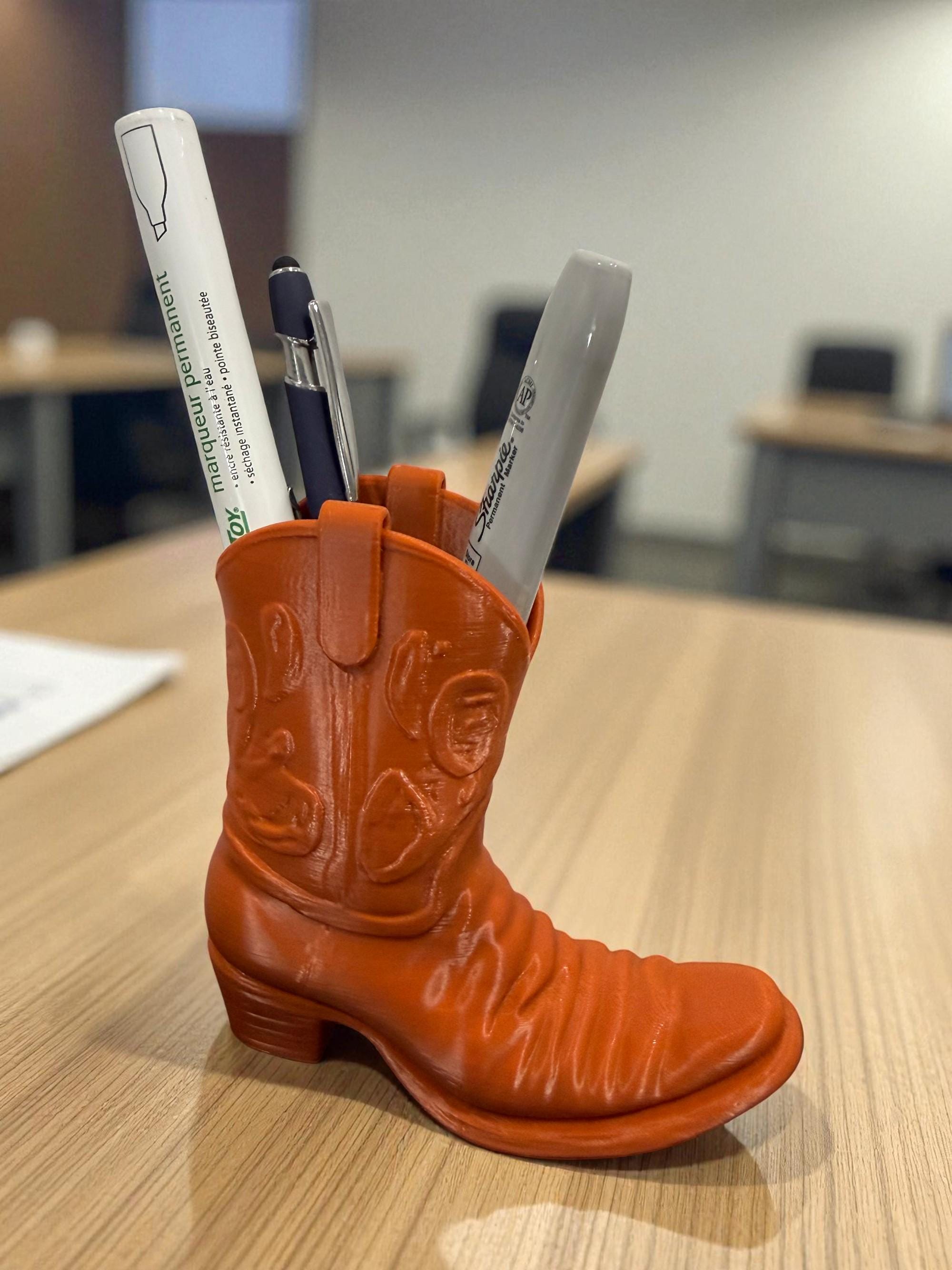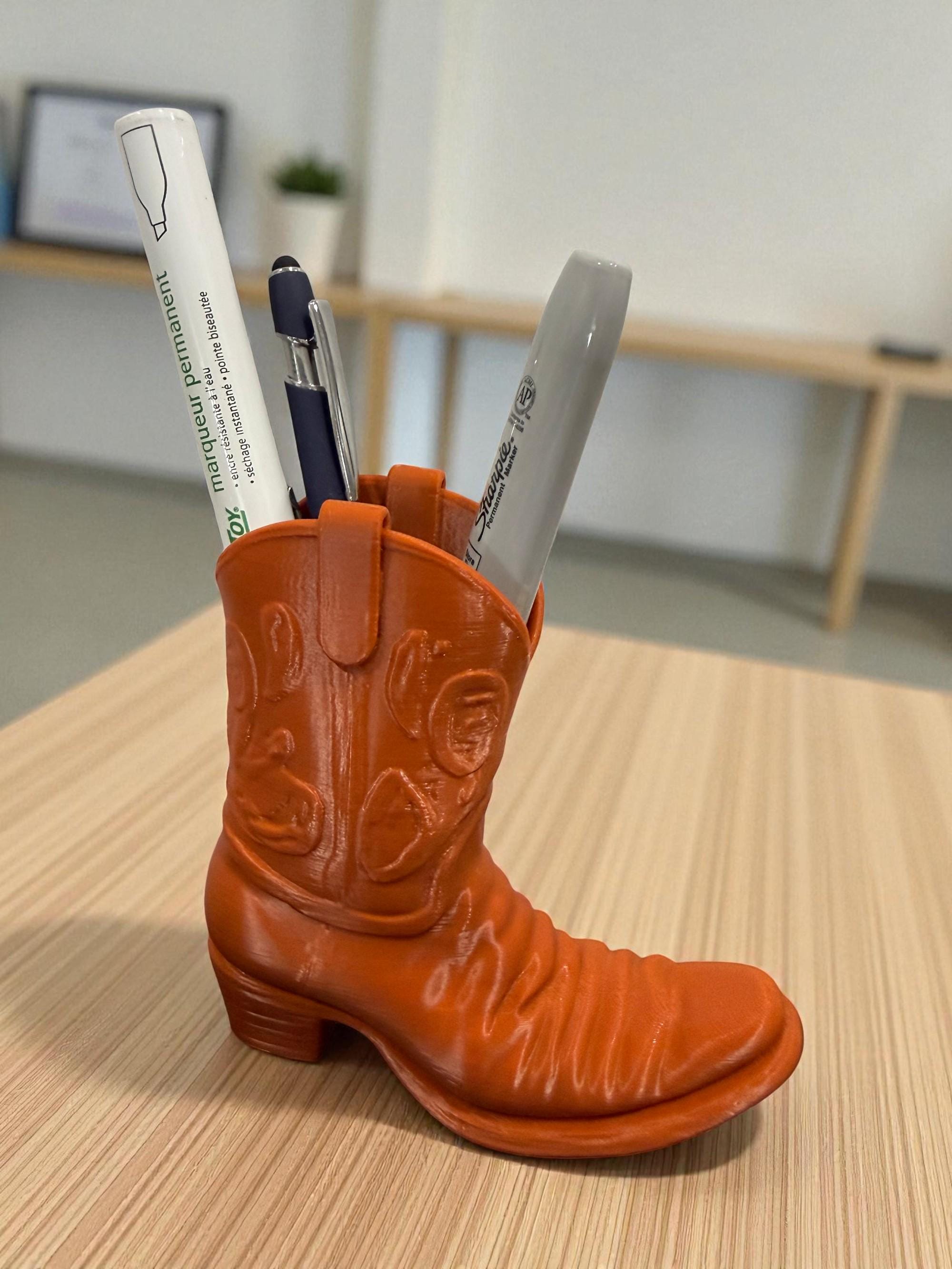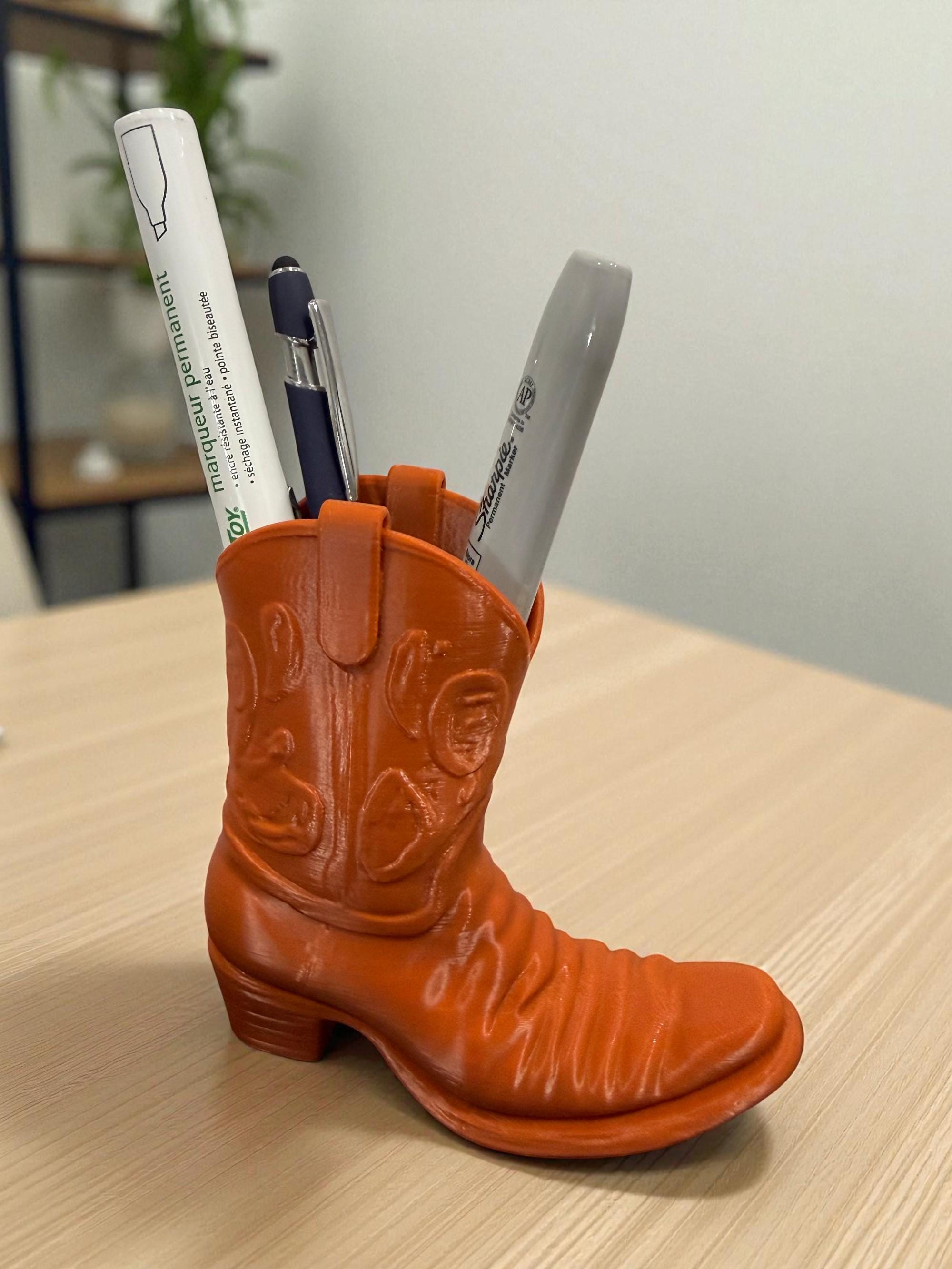 Add a touch of rustic flair to your desk with this handcrafted Cowboy Boot Desk Organizer! Designed to wrangle your pens, pencils, scissors, and more, this charming piece blends functionality with frontier style. Whether you're a country soul at heart or just love unique décor, this boot-shaped organizer is the perfect way to lasso your clutter and keep your workspace tidy.