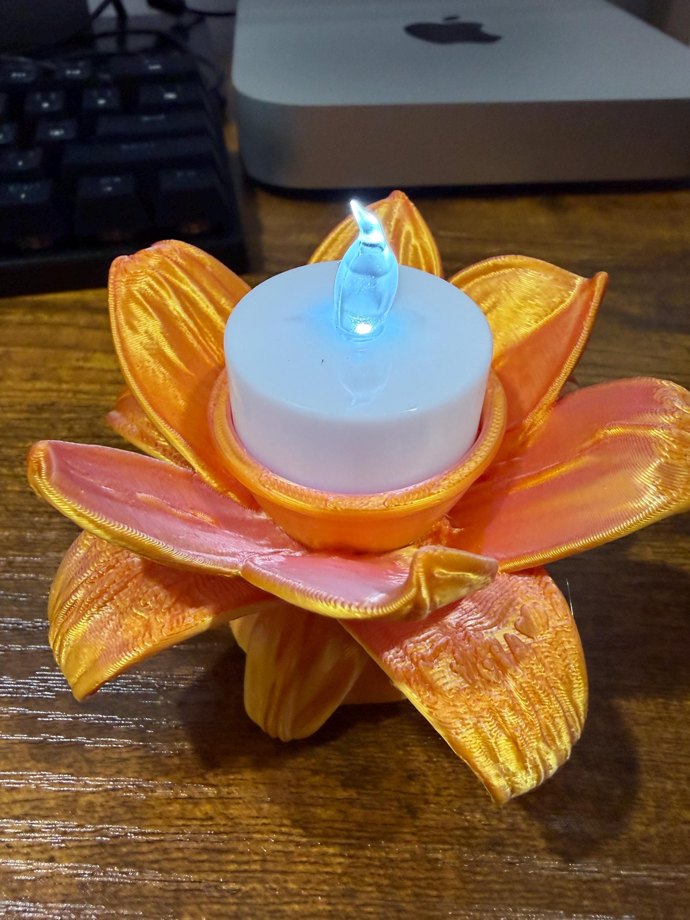 Radiant Lily Flower LED Tealight Holder – 3D Printed Floral Decor